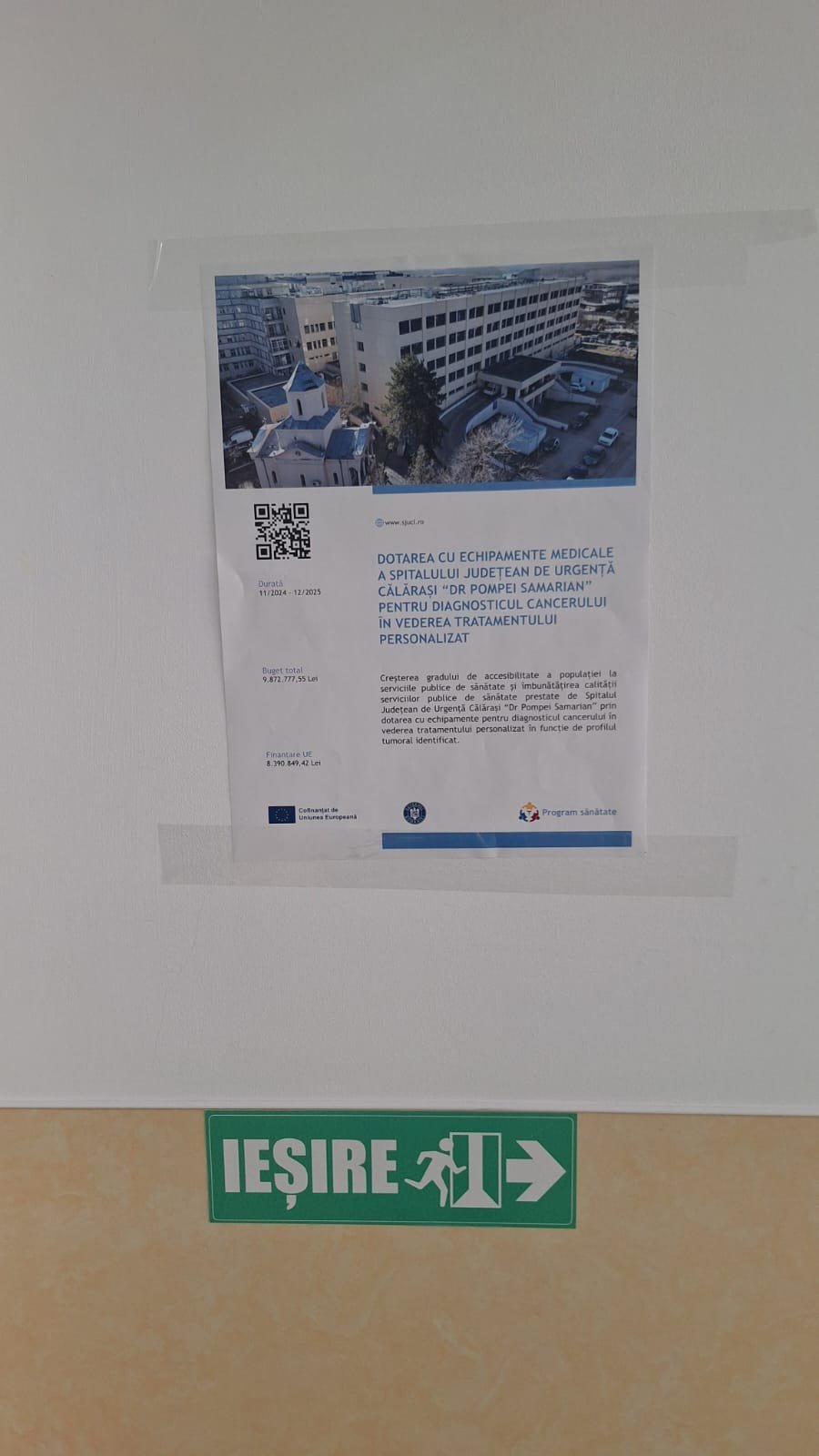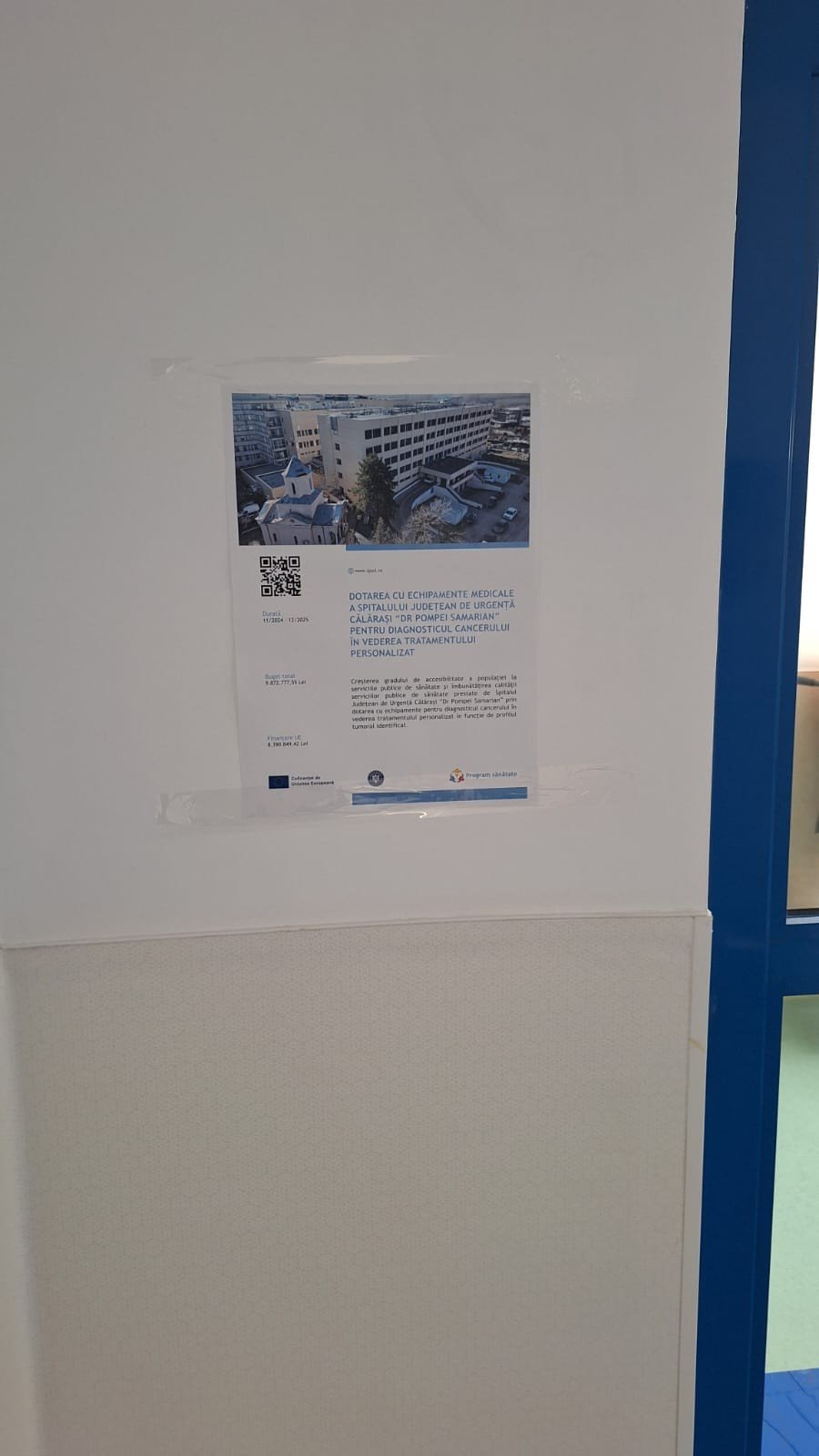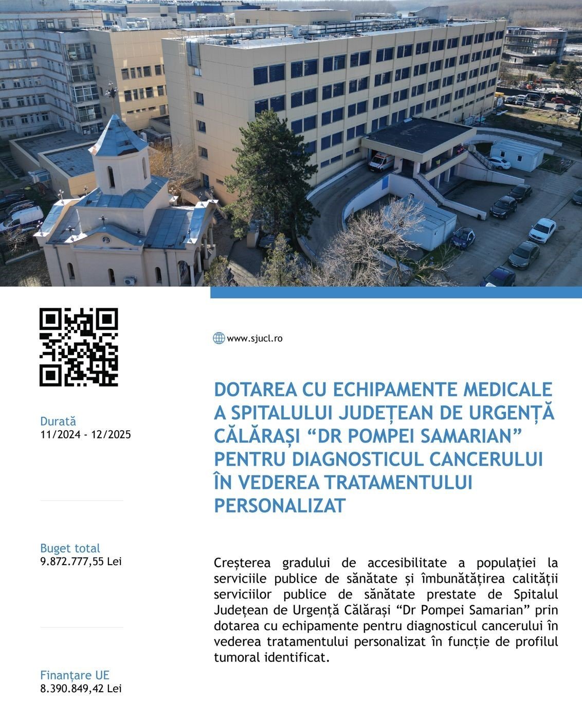 Titlul proiectului : “Dotarea cu echipamente medicale a Spitalului Județean de Urgență Călărași “Dr Pompei Samarian” pentru diagnosticul cancerului în vederea tratamentului personalizat”